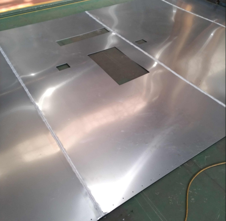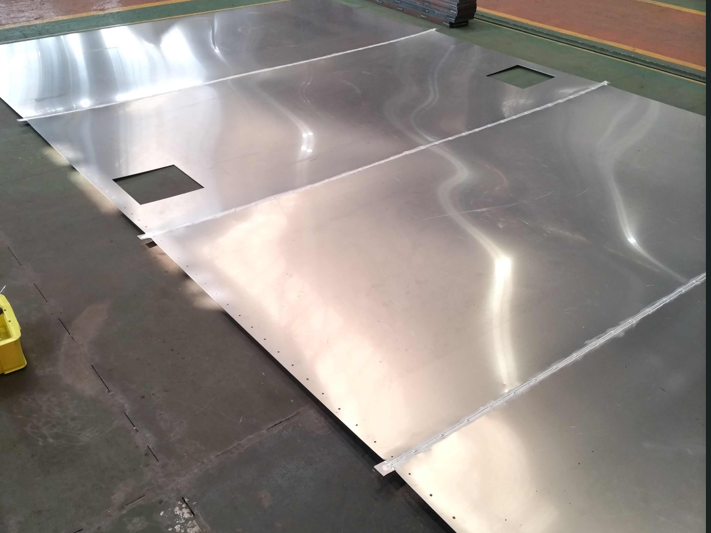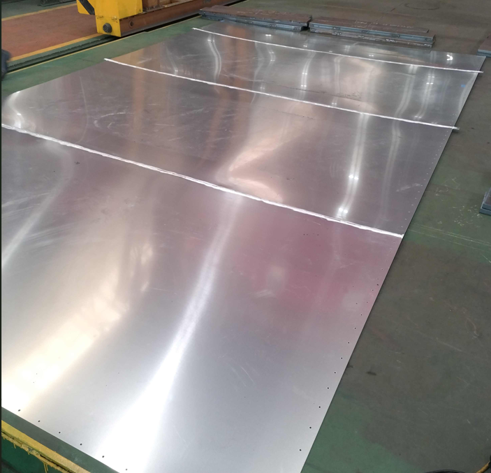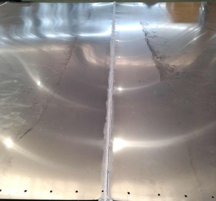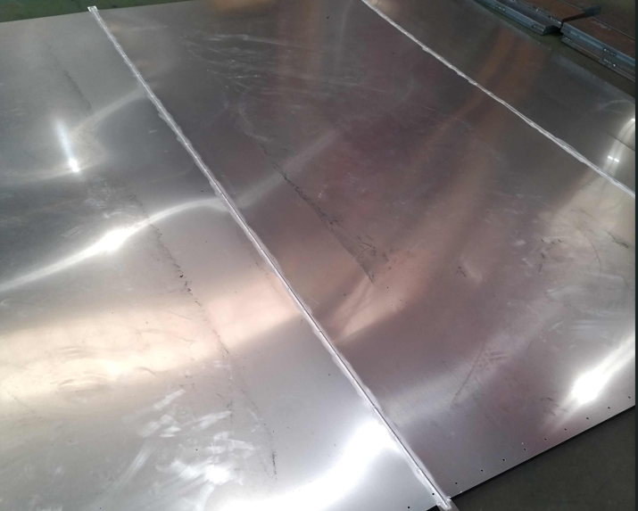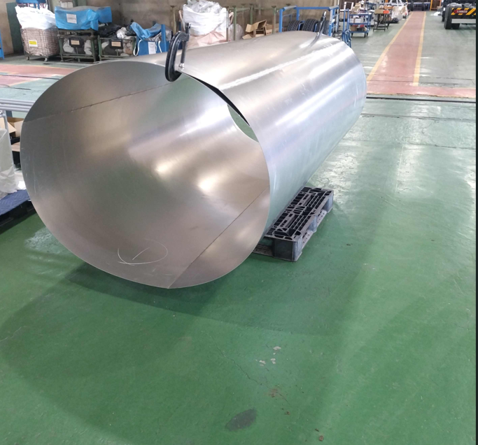 化工機車輌製作会社様よりタンクローリー外槽胴板の溶接組立(アルミニウム製)のご依頼をいただきました。2ミリ板4枚継ぎ歪無き溶接組立となります。